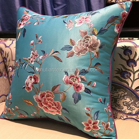الصين مصنع الساخن بيع مطرزة 100% البوليستر الحرير doupioni غطاء الوسادة للمنزل ديكو