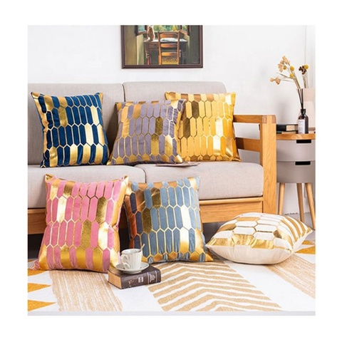 غطاء وسادة محبط قماش خيش بوليستر ذهبي مطبوع للوسائد